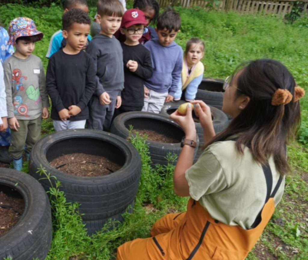 Our Forest School takes place in a special area of the school grounds, set within our beautiful field and surrounded by trees and the orchard. This peaceful, natural space gives children the freedom to explore and learn in the great outdoors. Most sessions are held around our Fire Circle – a safe and welcoming place for gathering, sharing stories, and enjoying outdoor activities – and in our purpose-built Outdoor Learning Hub, which provides shelter and space for hands-on learning.